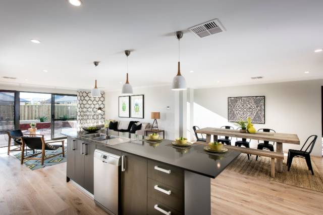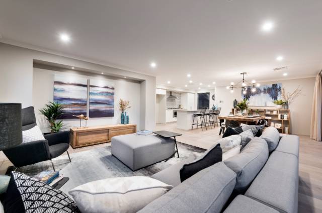客厅铺设澳洲本地环保复合木地板,多功能电视墙接口,全套豪华LED灯组(高配),并安装了中央冷暖空调(高配),通往后院的大型落地窗,打造出一个精致优雅的会客空间。