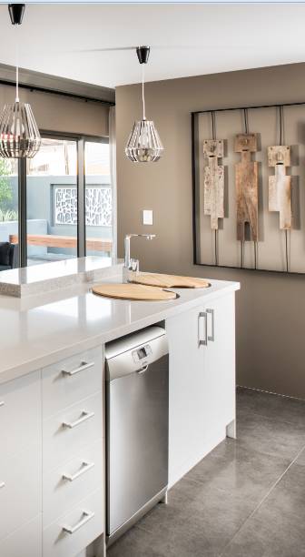 厨房采用了全套LED灯组(高配),简洁明亮。全套的德国BLANCO厨房设备、高光橱柜、澳洲ESSEN STONE人造大理石台面(高配)和本地知名品牌Caroma的厨房水处理系统,打造了一个经典北欧风格的现代品质厨房,并且我们在每一个细节处理中都考虑到了中西方使用习惯的差异。