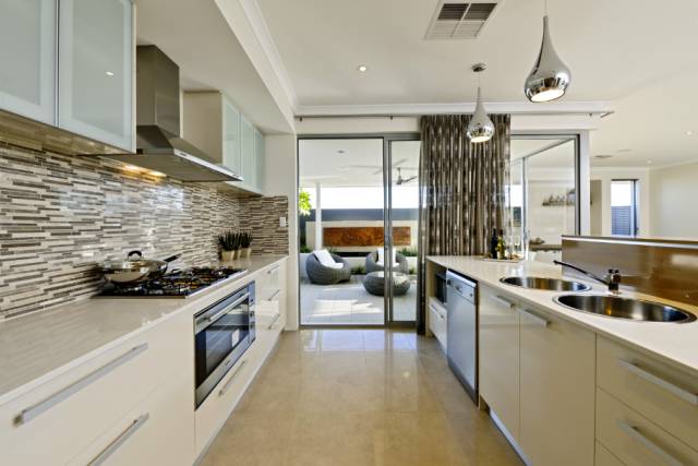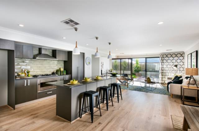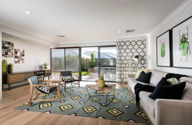 客厅铺设了澳洲本地环保复合木地板,装有多功能电视墙接口,全套豪华LED灯组(高配),中央冷暖空调(高配),通往后院的大型落地窗,打造出一个精致优雅的会客空间。